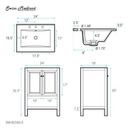 Swiss Madison Château 24 in. Natural Oak Bathroom Vanity With White, 3-Hole Ceramic Sink Top - SM-BV240-3