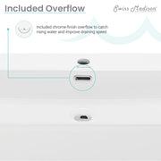 • Overflow: Equipped with an overflow that offers easy installation, spill prevention, and space-saving properties.