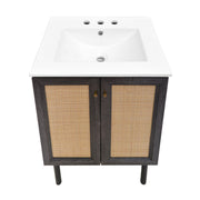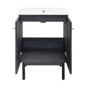 Swiss Madison Classe 24 in. Black Oak Bathroom Vanity With White, 3-Hole Ceramic Sink Top - SM-BV662B-3
