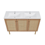 Swiss Madison Classe 48 in. Brown Oak, Double Basin Bathroom Vanity With White Ceramic Sink Top - SM-BV665D
