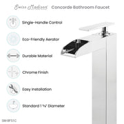 Swiss Madison Concorde Single Hole, Single-Handle, High Arc Waterfall, Bathroom Faucet in Chrome - SM-BF51C