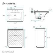 Swiss Madison Daxton 24 in. Brown Walnut Bathroom Vanity With Black, 3-Hole Ceramic Sink Top - SM-BV372WN-3MB
