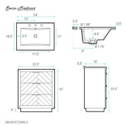 Swiss Madison Daxton 24 in. Brown Walnut Bathroom Vanity With White, 3-Hole Ceramic Sink Top - SM-BV372WN-3
