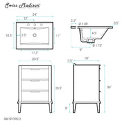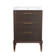 Swiss Madison Hugo 24 in. Brown Oak Bathroom Vanity With White, 3-Hole Ceramic Sink Top - SM-BV390-3