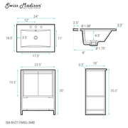 Swiss Madison Marseille 24 in. White Bathroom Vanity With Black, 3-Hole Ceramic Sink Top - SM-BV217WBG-3MB