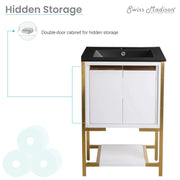 - 2 Doors 1 Open Shelf: Vanities offering two soft closing doors and 1 open shelf enhances your space with slam-free technology, additional storage space and creates an upscale appearance.