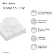 Swiss Madison Monaco 24" Floating Bathroom Shelf with Vessel Sink in White Marble - SM-WSM600