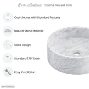 Swiss Madison Monaco 17" Round Vessel Bathroom Sink in Marbled Grey - SM-VSM252E