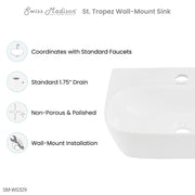 Capture the essence of coastal sophistication with the St. Tropez collection, evoking the breezy allure of Mediterranean living. Embrace contemporary simplicity with our wall-mount sinks, combining space-efficient design and innovative aesthetics creating a sleek and functional environment. Offered in white with a glossy finish.
