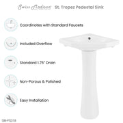Capture the essence of coastal sophistication with the St. Tropez collection, evoking the breezy allure of Mediterranean living. Infuse your bathroom with timeless grace with a pedestal sink, capturing a sense of classic elegance that never goes out of style. Offered in white with a glossy finish.