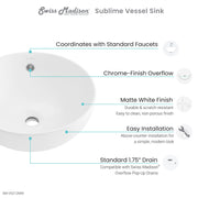 Swiss Madison Sublime 17” Round Vessel Sink in Matte White - SM-VS212MW