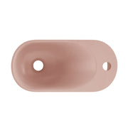 Immerse yourself in the elegance of earthy hues with the Terre collection, creating a grounded and tranquil ambiance. Embrace contemporary simplicity with our wall-mount sinks, combining space-efficient design and innovative aesthetics creating a sleek and functional environment. Offered in pale pink with a matte finish.