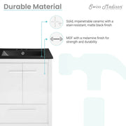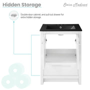 Swiss Madison Virage 24 in. White Bathroom Vanity With Black, 3-Hole Ceramic Sink Top - SM-BV730W-3MB