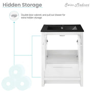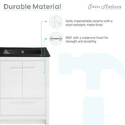 Swiss Madison Virage 24 in. White Bathroom Vanity With Black Ceramic Sink Top - SM-BV730WMB