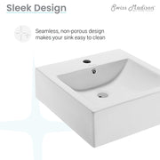 Swiss Madison Voltaire 18 Square Ceramic Wall Mount Sink - SM-VS276