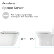 - Space Saving: With the water tank in the wall, the Wall-Hung toilet saves space in your bathroom and is aesthetically pleasing in design.