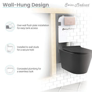 - Space Saving: With the water tank in the wall, the Wall-Hung toilet saves space in your bathroom and is aesthetically pleasing in design.