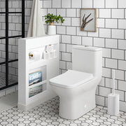 Embrace geometric balance with the Carre collection, where clean lines and modern design principles take center stage. Redefine your bathroom with our one-piece toilet, combining seamless design and functionality for a truly modern upgrade. Offered in white with a glossy finish.
