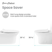 - Space Saving: With the water tank in the wall, the Wall-Hung toilet saves space in your bathroom and is aesthetically pleasing in design.