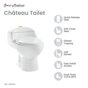 Swiss Madison Chateau One Piece Elongated Toilet Dual Flush, Brushed Gold Hardware 1.1/1.6 gpf - SM-1T803HG