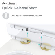 - Soft Close and Quick Release Seat: Provides a silent and gentle closing mechanism for added convenience and safety. With just the push of a button, the seat detaches completely for a thorough cleaning.