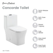 Swiss Madison Concorde One Piece Square Toilet Dual Flush, Black Hardware 1.1/1.6 gpf - SM-1T106HB