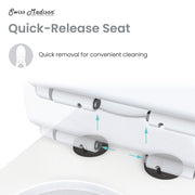 - Soft Close and Quick Release Seat: Provides a silent and gentle closing mechanism for added convenience and safety. With just the push of a button, the seat detaches completely for a thorough cleaning.