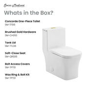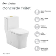 Swiss Madison Concorde One Piece Square Toilet Dual Flush, Brushed Gold Hardware 1.1/1.6 gpf - SM-1T106HG