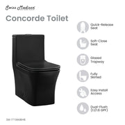 Swiss Madison Concorde One Piece Square Toilet Dual Flush in Matte Black, Black Hardware 1.1/1.6 gpf - SM-1T106MBHB