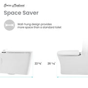 - Space Saving: With the water tank in the wall, the Wall-Hung toilet saves space in your bathroom and is aesthetically pleasing in design.