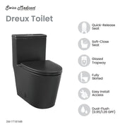 Swiss Madison Dreux One Piece Elongated Dual Flush Toilet with 0.95/1.26 GPF in Matte Black - SM-1T181MB