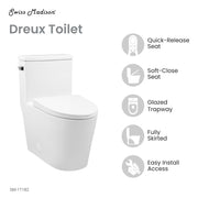 Immerse yourself in contemporary designs with the Dreux collection, where innovation, functionality, and aesthetics come together. Redefine your bathroom with our one-piece toilet, combining seamless design and functionality for a truly modern upgrade. Offered in white with a glossy finish.