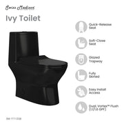 Swiss Madison Ivy One Piece Toilet Dual Vortex Flush in Glossy Black 1.1/1.6 gpf - SM-1T112GB