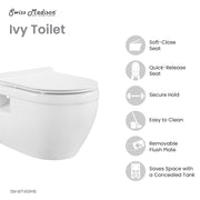 Swiss Madison Ivy Wall Hung Elongated Toilet Bowl, Black Hardware - SM-WT450HB