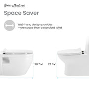 - Space Saving: With the water tank in the wall, the Wall-Hung toilet saves space in your bathroom and is aesthetically pleasing in design.
