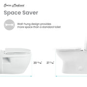 - Space Saving: With the water tank in the wall, the Wall-Hung toilet saves space in your bathroom and is aesthetically pleasing in design.