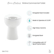 Swiss Madison Sirene Floor-Mounted Comfort Height Commercial Elongated Top Flush Spud Flushometer Toilet Bowl - SM-CT101
