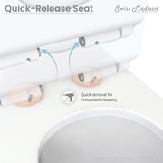 - Soft Close and Quick Release Seat: Provides a silent and gentle closing mechanism for added convenience and safety. With just the push of a button, the seat detaches completely for a thorough cleaning.