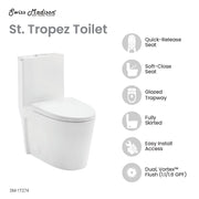 Swiss Madison St. Tropez One Piece Elongated Toilet Dual Vortex Flush 1.1/1.6 gpf with 10" Rough In - SM-1T274