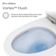 - Fully Glazed and Skirted Trapway: The skirted trapway offers hidden plumbing creating an elevated and luxurious design with a smooth finish for easy cleaning. The fully glazed trapway prevents clogs and keeps water flowing freely.