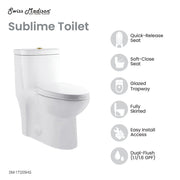 Swiss Madison Sublime One Piece Elongated Toilet Dual Flush, Brushed Gold Hardware 1.1/1.6 gpf - SM-1T205HG