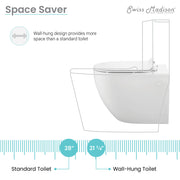 - Space Saving: With the water tank in the wall, the Wall-Hung toilet saves space in your bathroom and is aesthetically pleasing in design.