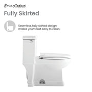 - Fully Glazed and Skirted Trapway: The skirted trapway offers hidden plumbing creating an elevated and luxurious design with a smooth finish for easy cleaning. The fully glazed trapway prevents clogs and keeps water flowing freely.