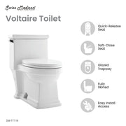 Embrace timeless elegance with the Voltaire collection, fusing classic charm with contemporary comfort. Redefine your bathroom with our one-piece toilet, combining seamless design and functionality for a truly modern upgrade. Offered in white with a glossy finish.