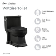Embrace timeless elegance with the Voltaire collection, fusing classic charm with contemporary comfort. Redefine your bathroom with our one-piece toilet, combining seamless design and functionality for a truly modern upgrade. Offered in black with a matte finish.