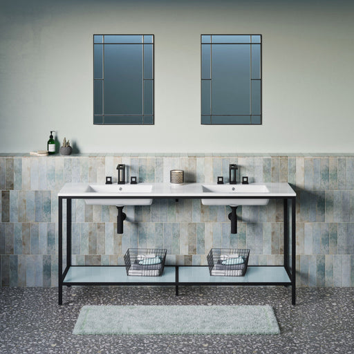 View full detailsSwiss Madison Pierre 72 Double, Freestanding, Open Shelf, Matte Black Metal Frame Bathroom Vanity - SM-BV172