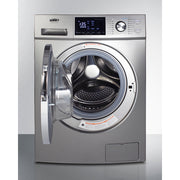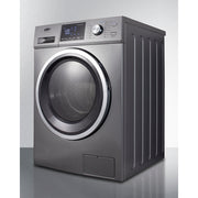 SUMMIT SPWD2203P is a 24" wide washer/dryer combo designed to maximize laundry capacity in an easy fit. This non-vented condensing (ductless) 115V washer/dryer comes in a modern platinum finish. The stainless steel drum offers a generous 2.7 cu.ft. capacity to accommodate larger laundry loads than previous versions of this unit. The front-loading design features a large, easy-to-open glass door and pull-out dispenser for detergent and fabric softener. A combination digital and dial control panel with a large LCD readout makes it easy and intuitive to operate this unit. The SPWD2203P includes 16 wash programs to ensure all fabrics receive the proper treatment. Settings include specialized programs for cotton, permanent press with de-wrinkling, heavy duty, bulky/large loads, sportswear, babywear, wool, delicates, and more.A "Sanitize" cycle allows the washer to use higher temperatures for smaller loads, while a "Quick" setting is ideal for washing small loads in less time. For improved maintenance, this combo includes a "tub clean" cycle. Five spin speeds up to 1300 RPM help to provide the right level of spin for each dry cycle. This unit offers the choice of four temperature settings and three soil levels, as well as a memory function ("My Cycle") for added convenience. With its quality performance, large capacity, and attractive design, the SPWD2203P brings true value and efficiency to laundry in space-challenged settings. NOTE: This unit replaces previous model SPWD2201SS, and features an upgraded interior with a larger wash and dry capacity.
