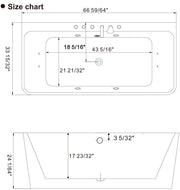 Empava 67" Freestanding Whirlpool Bathtub with Center Drain EMPV-67AIS03