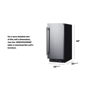 SUMMIT brings true convenience to small kitchen spaces with the SCFF1533BSS, a 15" wide fully frost-free all-freezer. The SCFF1533BSS is front-breathing for built-in use under counters, but also features a fully finished black cabinet to allow freestanding use. The user reversible door is fully wrapped in stainless steel and a factory installed lock offers keyed security. This unit includes our fully articulating European style hinge design. Inside, the SCFF1533BSS is fully frost-free to minimize user maintenance, with slide-out chrome shelves that can be adjusted to accommodate a variety of items. Recessed LED lighting provides an elegant and efficient display inside the 2.4 cu.ft. interior. This unit includes a digital thermostat in the kickplate for easy and intuitive temperature control. With a uniquely slim size and user-friendly features, the SCFF1533BSS is the ideal freezer for space-challenged homes. This unit can be paired with the matching FF1532BSS all-refrigerator as a side-by-side set or combined with our Stack15. It is ETL-S listed to NSF-7 commercial standards and meets UL-471.