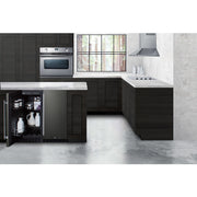 Door wipes clean with a dry cloth, while the dark basalt finish hides most smudges